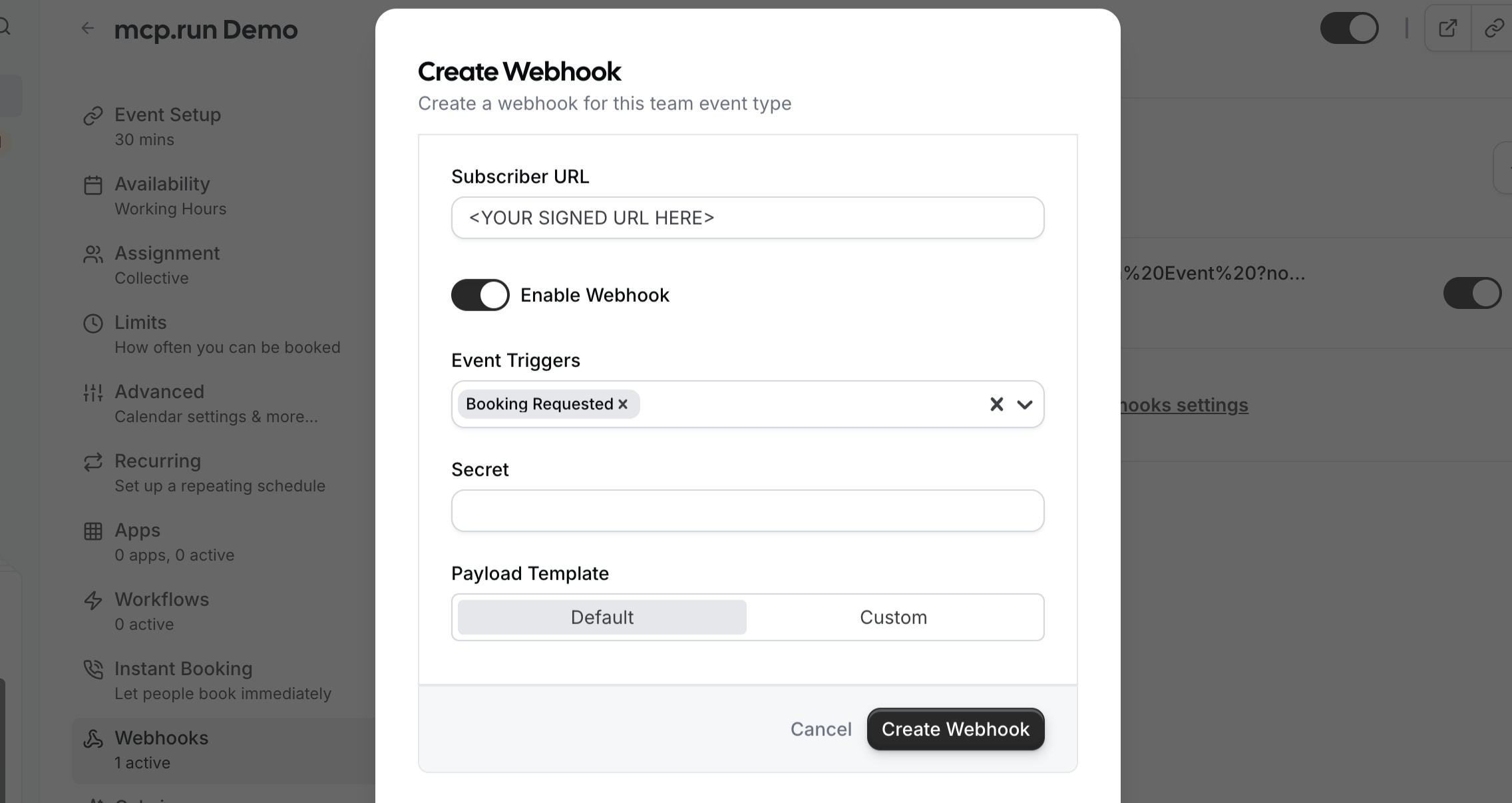 Create the Cal.com Webhook