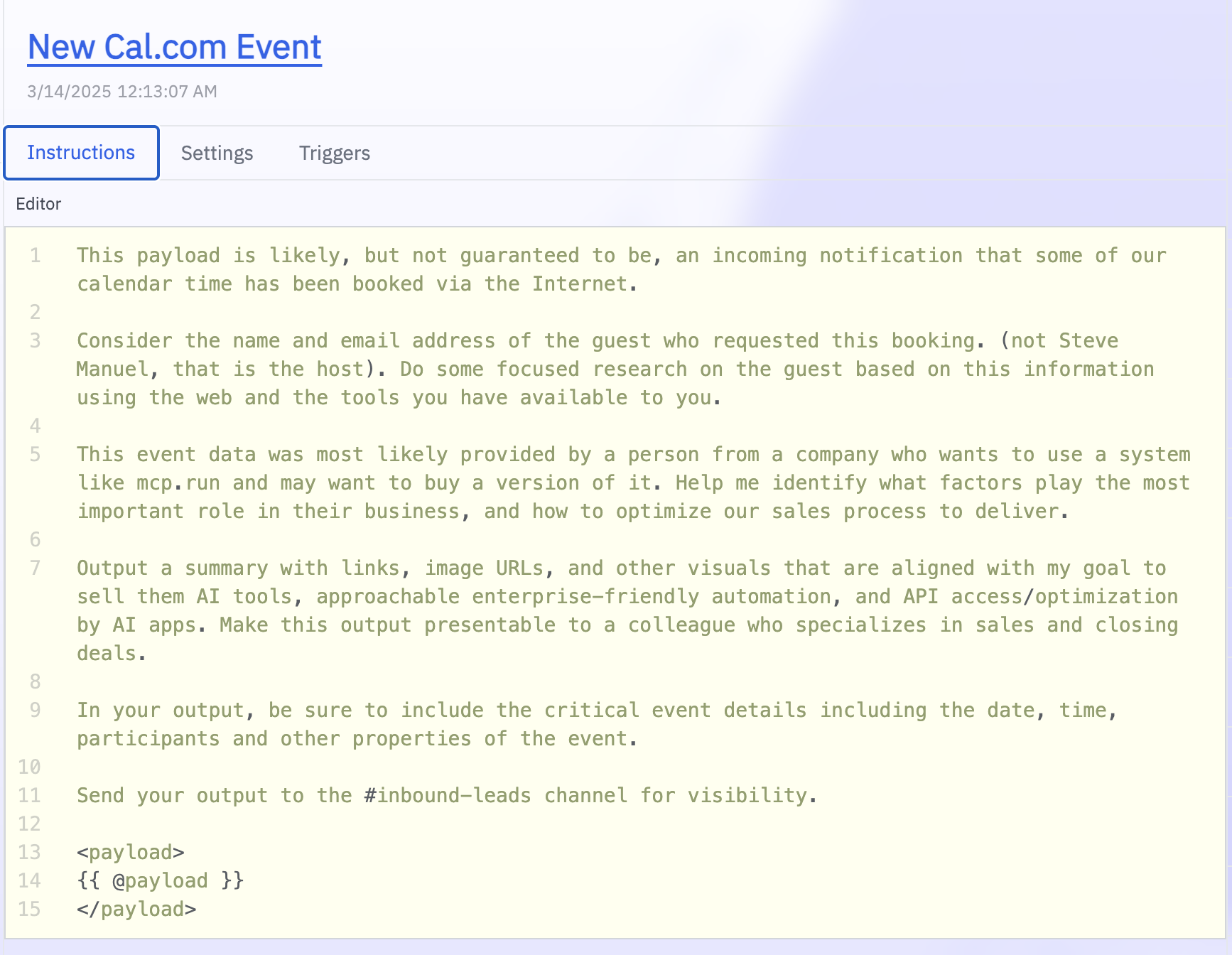 This tutorial guides you through creating a mcp.run Task that automatically handles inbound lead research through Cal.com booking requests. Save hours of time researching inbound leads with AI.