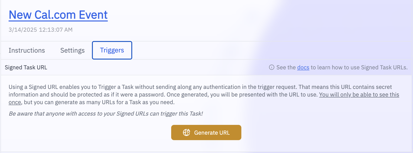 Copy The Task's Signed URL